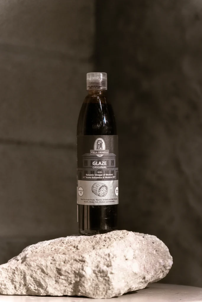 Reducción espesa de vinagre balsámico con sabor equilibrado entre dulce y ácido. Ideal para dar brillo, sabor y una presentación gourmet a ensaladas, carnes, quesos, pizzas, verduras asadas y postres.